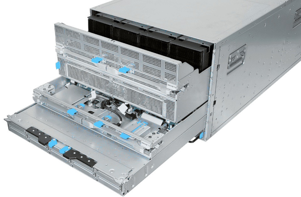 产品兼容 NVIDIA H100/H200 、Intel Gaudi3多类加速器,支持18 个NVMe 硬盘灵活扩容,可实现单节点独立运算与多节点集群部署。应用环境覆盖企业私有大模型全流程部署、金融量化微秒级运算等单点需求场景,也能满足云服务商万卡级算力池搭建、科研机构多团队并行创新等规模化场景,凭借灵活适配性支撑不同行业的AI 与HPC 落地需求。