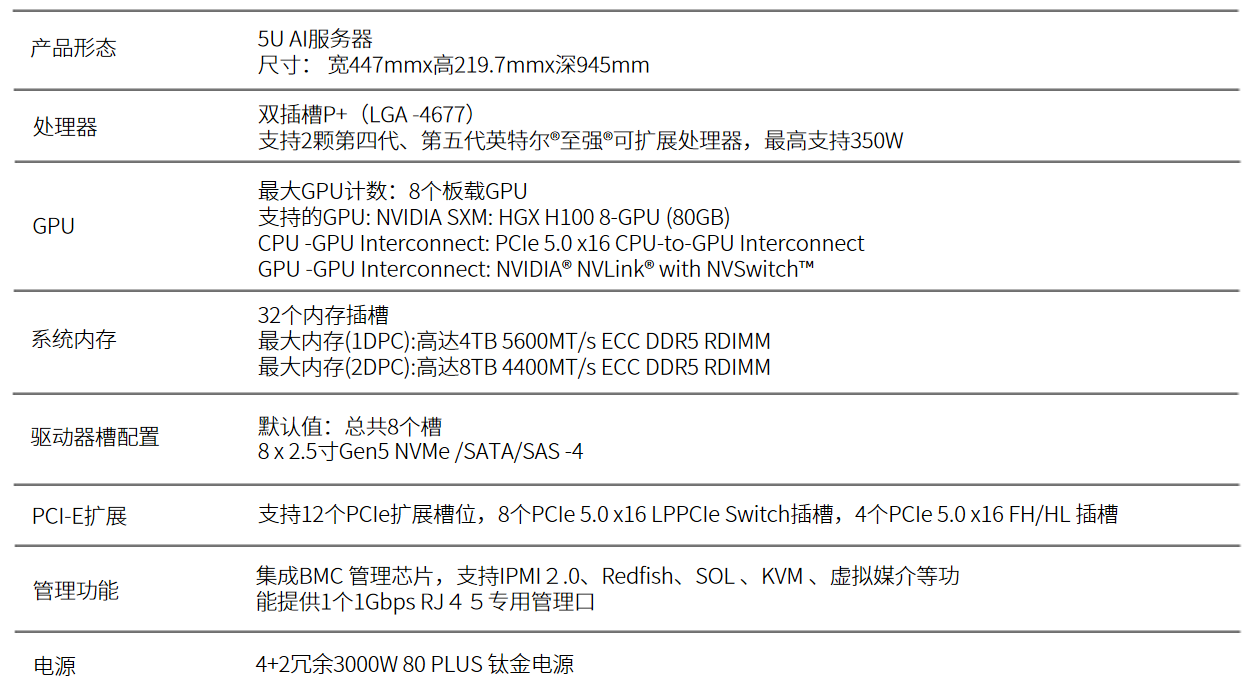 ZT82JSI5H1是咨钛推出的一款面向高端 AI 与高性能计算(HPC )领域的 5U 双路服务器,其产品本身在硬件配置、扩展能力和稳定防护上亮点突出,应用层面则精准适配 AI 全流程及多元超算场景。