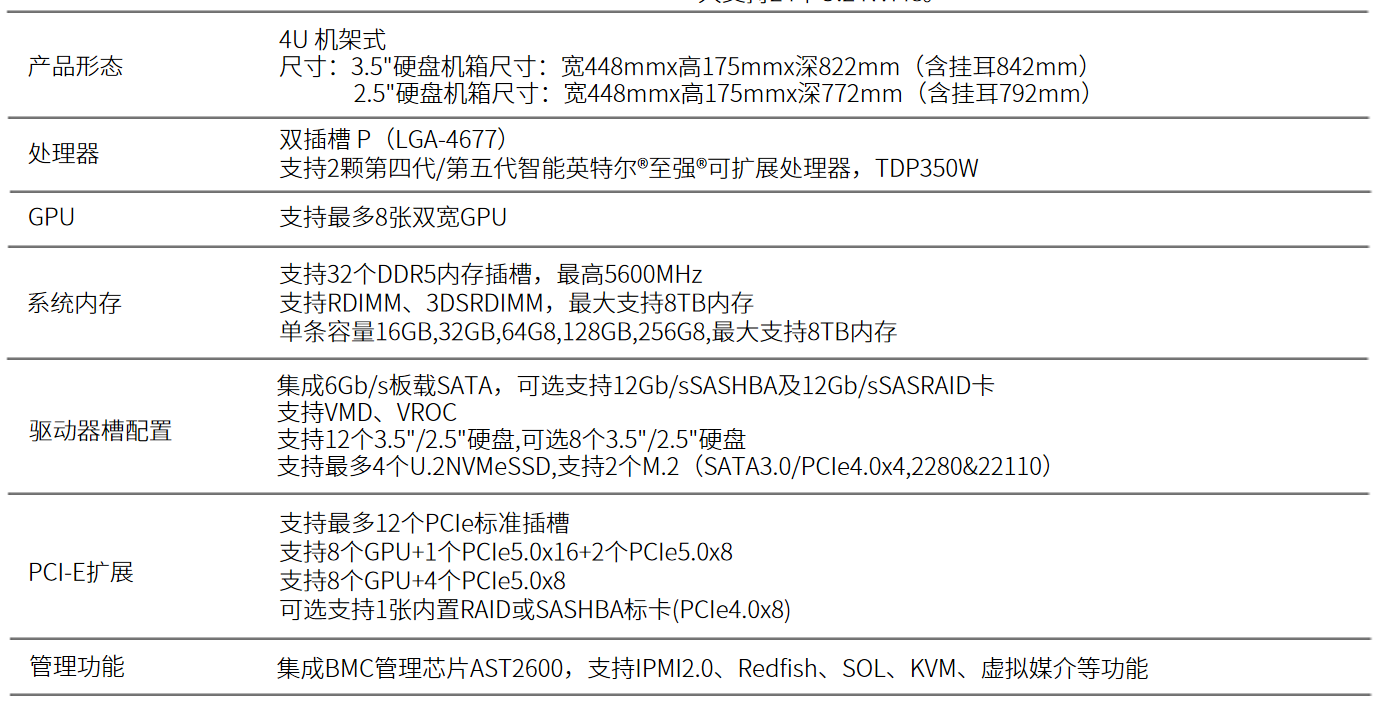 支持最高350WTDP支持10张450WGPU卡,提供极致异构算力;
